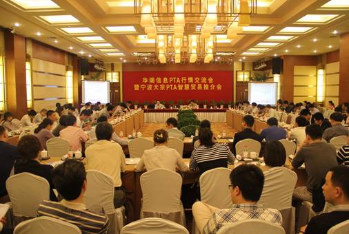 5月8日, 寧波大宗商品交易所PTA推介會在杭州蕭山金馬飯店召開。本次大會由寧波大宗商品交易所、華瑞信息(化纖信息網(wǎng))聯(lián)合主辦。杭州永盛、恒逸石化、三菱化工、廈門建發(fā)等50余家生產(chǎn)、貿(mào)易企業(yè)共150余人參會。