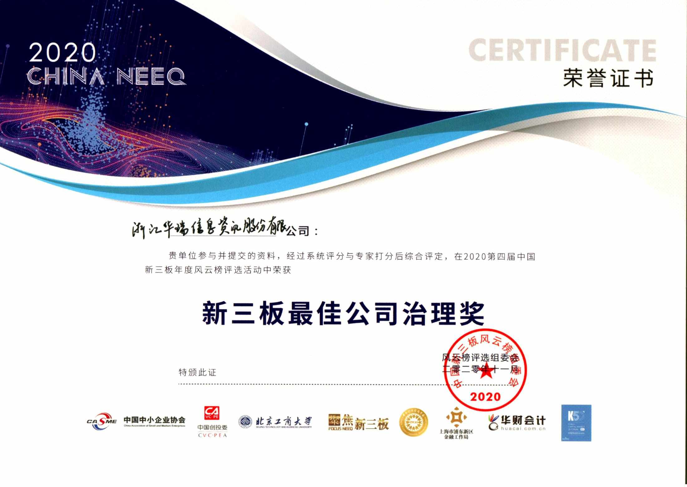 恭喜浙江華瑞信息資訊股份有限公司被授予新三板最佳公司治理獎